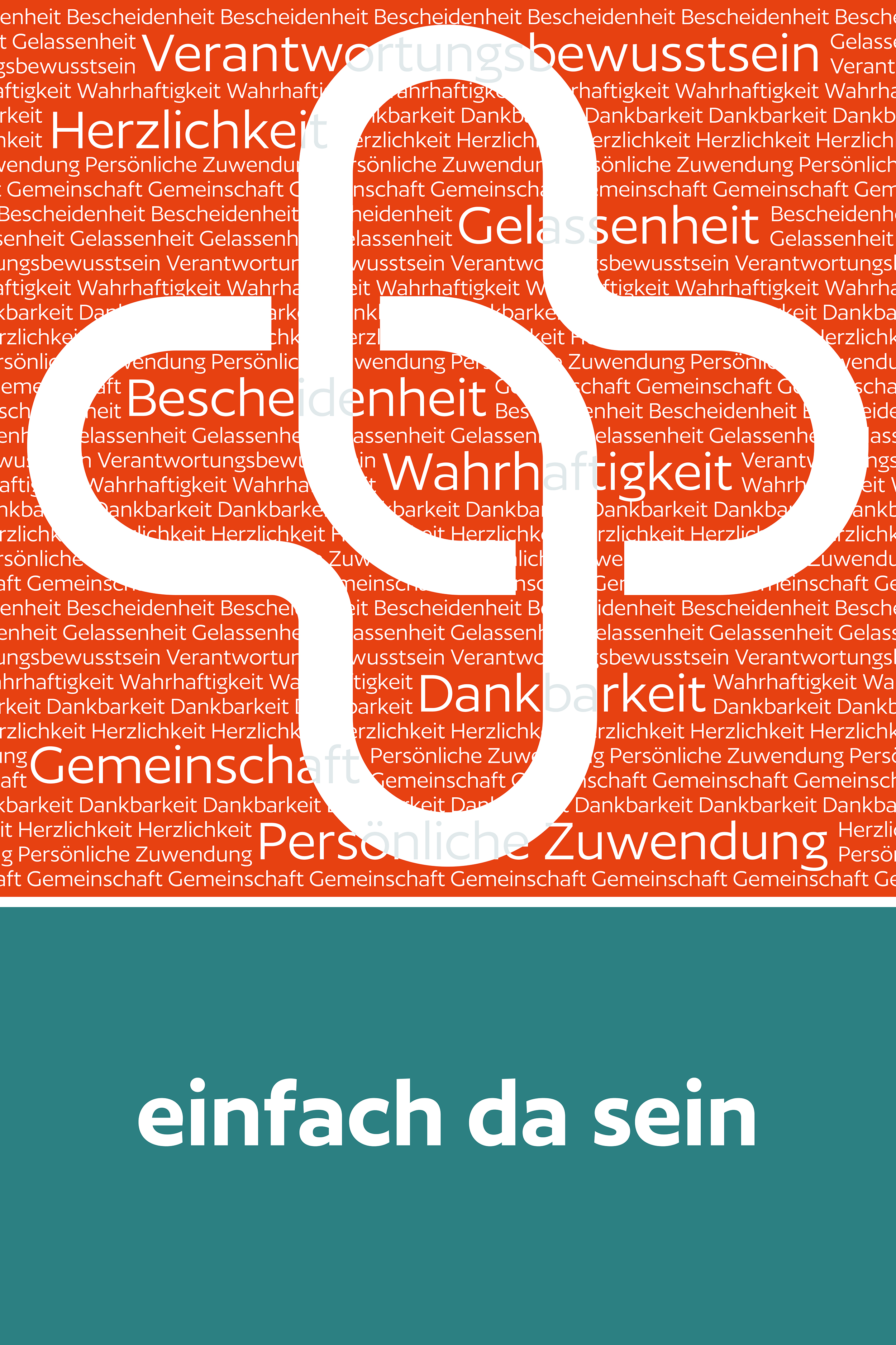 Die Verbindung von Claim, Grundwerten, Christlicher Orientierung und Leitbildern bringt unsere "Unternehmensidentität" zum Ausdruck. Der Claim einfach da sein kommuniziert das Hauptversprechen, während unsere acht Grundwerte die ethischen und moralischen Prinzipien darstellen, die das Handeln in der Organisation leiten. Die Christliche Orientierung und die Leitbilder der Einrichtungen sind spezifische Richtlinien oder Verhaltensnormen, die auf diesen Werten basieren und in der täglichen Praxis mit Leben gefüllt werden. Mehr dazu in unserem Flyer: Was uns wichtig ist